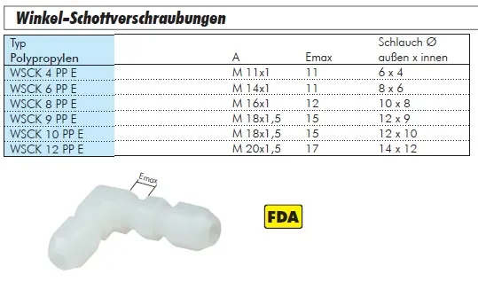 Winkel-Schottverschraubungen PP, alle Größen