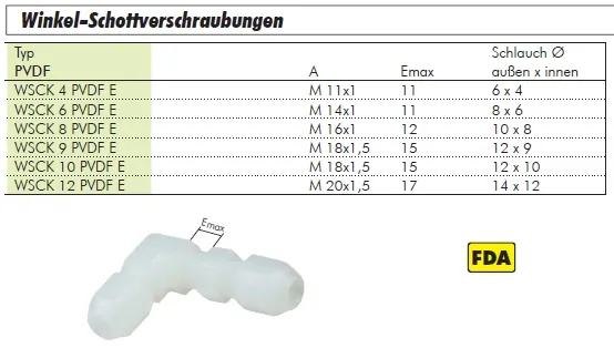 Winkel-Schottverschraubungen PVDF, alle Größen