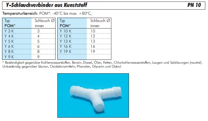 Chemisch beständige Y-Verbinder aus Kunststoff für leichte Anwendungen in Industrie & Handwerk