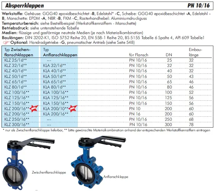 Die Zwischenflansch- und Anflanschklappen dienen als robuste Absperrventile für Rohrleitungen und sind für Betriebsdrücke PN 10/16 ausgelegt. Sie gewährleisten eine zuverlässige Absperrung von Medien in Industrie-, Wasser- und Prozessanlagen.