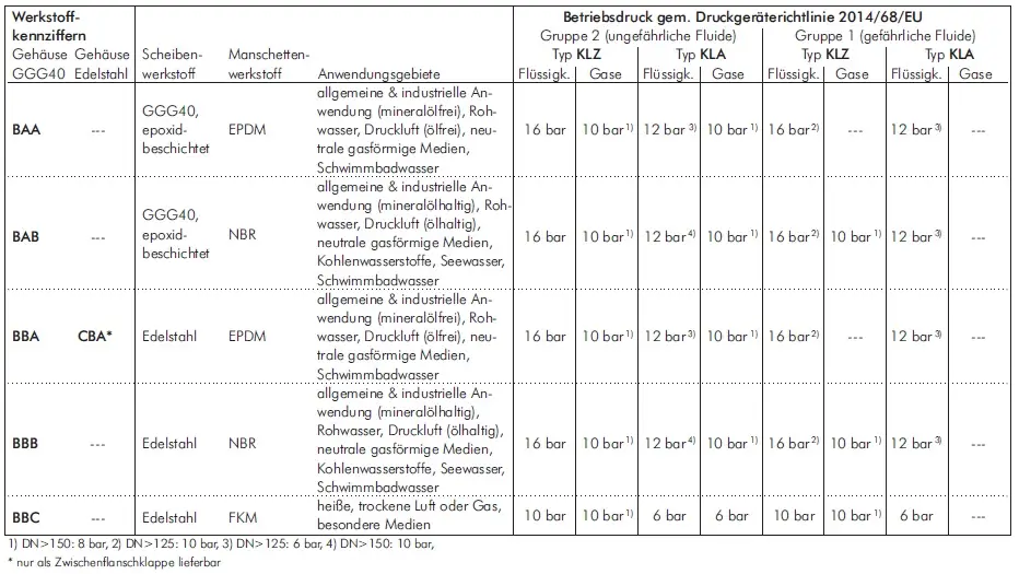 Werkstoffe: Gehäuse: GGG40 epoxidbeschichtet -B, Edelstahl* -C